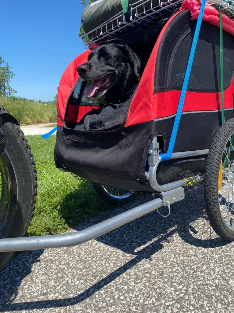 Dax and I travelled that day till we arrived near the Memorial Gardens. It was close to sunset and we were hot and tired. In my next blog, Dax and I find a pitch near the Memorial Gardens and settle in for a good night sleep and dreamed about what the Chrysler Greenway Trail would be like…not what we were expecting that’s for sure!!