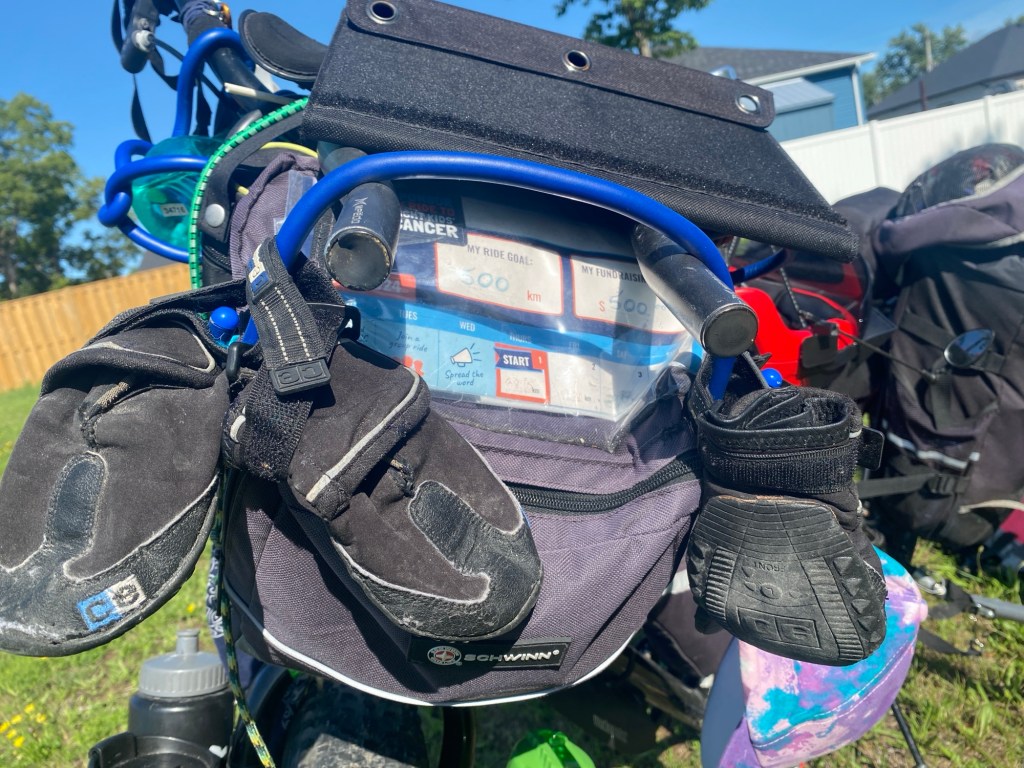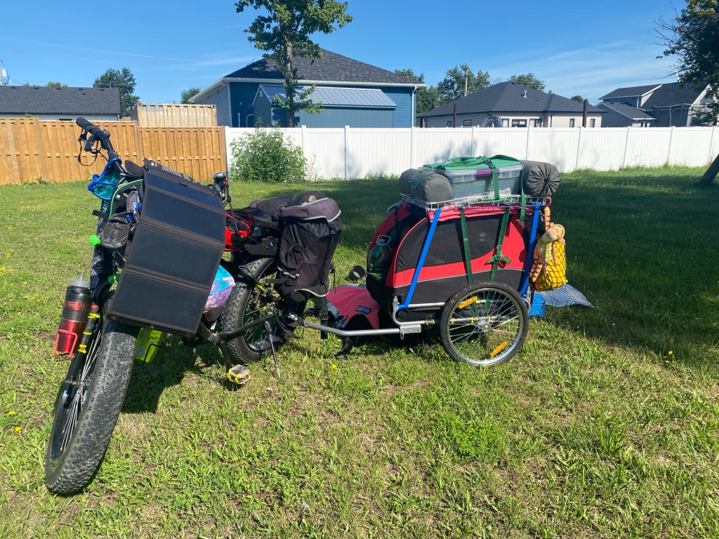 Dax’s runners are glued and curing in the sun. Today is all pavement riding so it won’t be so hard on his paws like yesterday