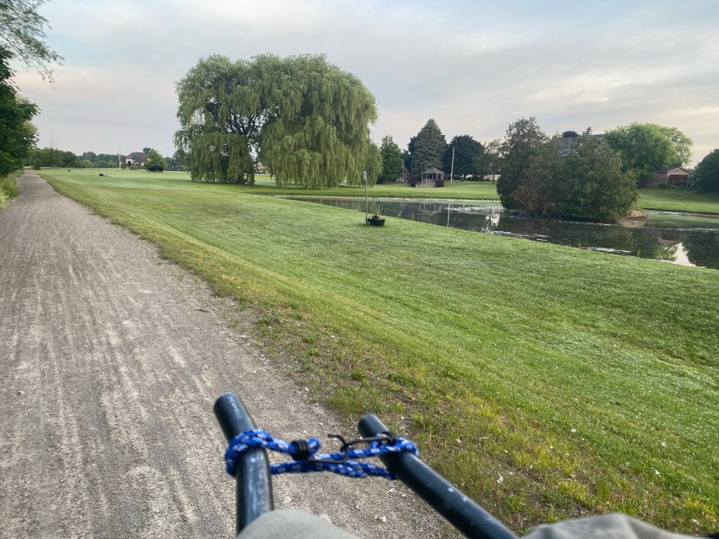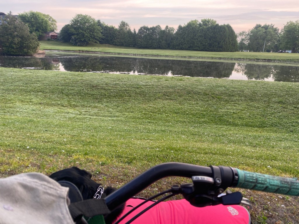Ride to Brantford. Started at 5:30 am from Terry’s. Found the “Farm Stay” property Terry had mentioned. They are connected with bikingontario.org, so I’m going to look them up to see about booking and cost for next year. Dax took a swim in the Grand River to cool down. He enjoyed that but was walking stiffly when he came out of the water. Never seen that before. Wondered if now he is 9 yrs old is he instantly an old man?? 22km run can do that to anyone.
