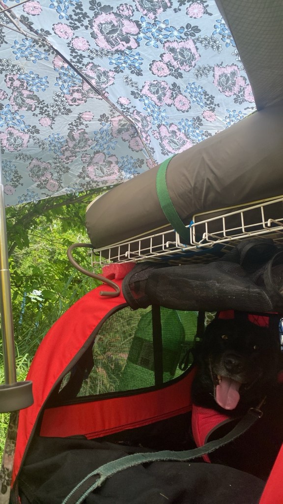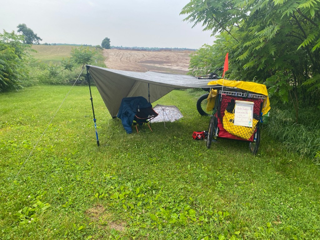 Well, it was not a moderate rain that eventually came down on us. It was more like a hurricane!!! I had to literally hold the doors of the tent together so it wouldn’t blow away. The rain tarp pegs held in the ground but the tarp did fall covering the tent more. That was to our advantage though. Gave us more rain and wind protection. The lighting struck so close I saw the gold colour through the green tent walls. It was one of the worst storms I’ve lived through. But short – thank goodness. If it had been longer my arms would have given out from holding the vestibule doors together. Ha!!