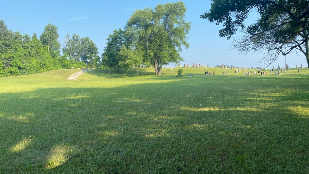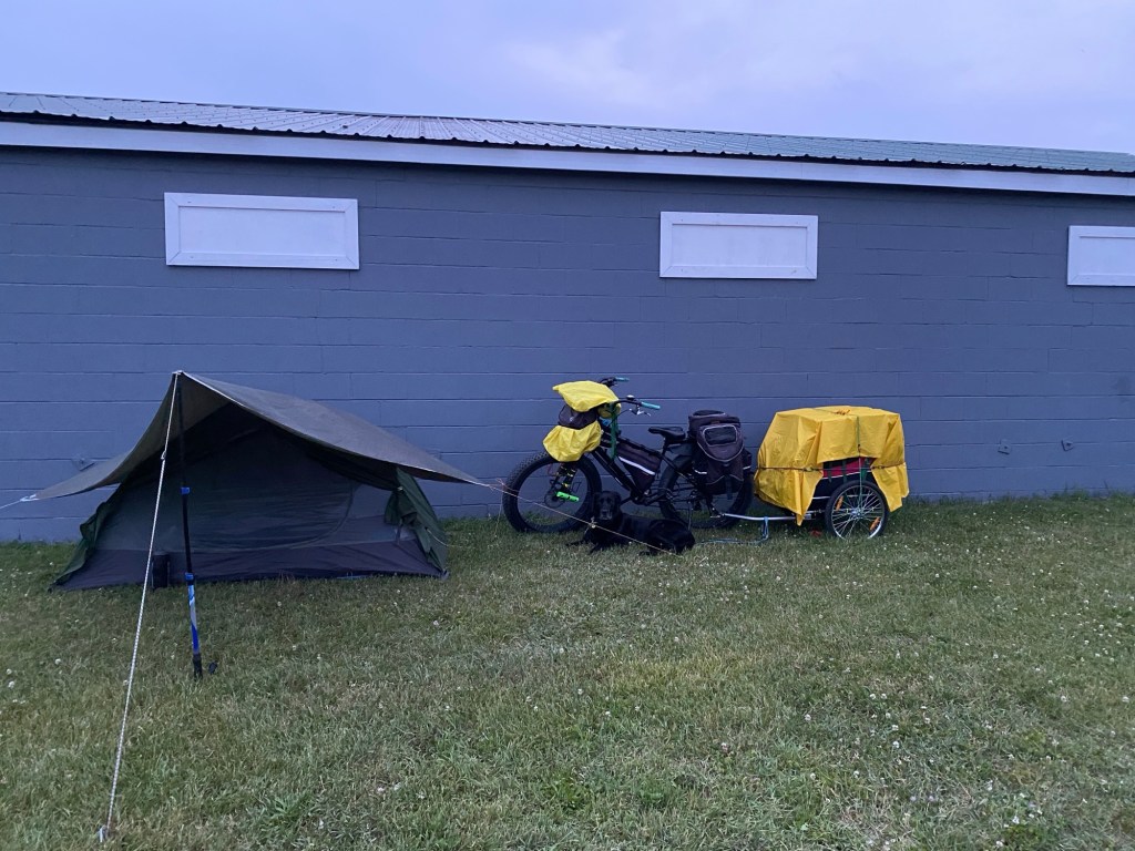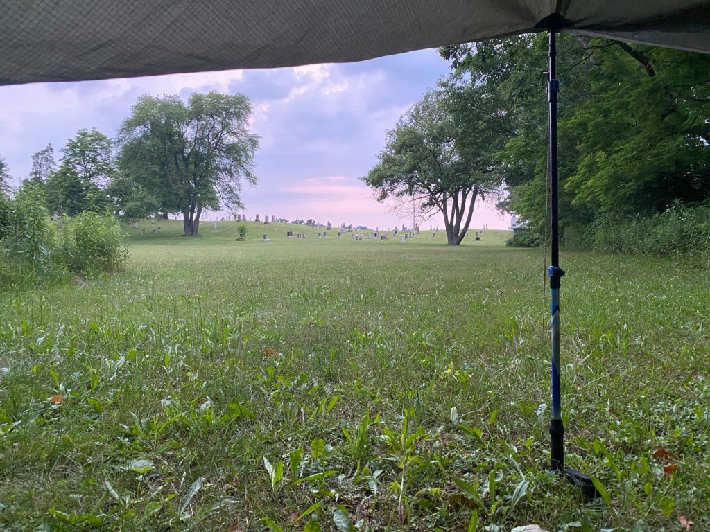 Stopped for the day to stay out of the heat in a quiet little cemetery outside of Windham. Lots of old trees to take shade under till the sun went down. Found a quiet little patch of grass to pitch our tent on for the night. There were solar lights in a little semi circle of graves that started to twinkle after dark. Very pretty. Woke up in the middle of the night to see the lights flying around about 12 feet off the ground over those graves.. my brain said, βoh ya, thatβs normalβ and put our head down and went back to sleep. in the morning, we were thinking about what we had seen and our brain said, βnaw, that wasnβt normal at all.β Haaa!!! π³ π± π»π